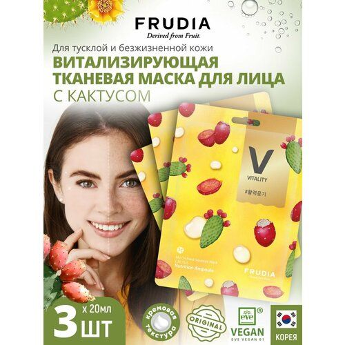 НАЙТИ ВЫГОДНЕЕ - Frudia Витализирующая маска с кактусом My Orchard Squeeze Mask Cactus, 61 г, 20 мл, 20 мл, 3 уп.