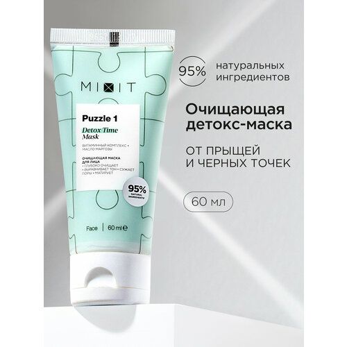 НАЙТИ ВЫГОДНЕЕ - MIXIT Очищающая маска для лица с витаминным, минеральным комплексом и маслом маргозы, Detox Time Mask Puzzle 1 60 ml