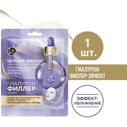 НАЙТИ ВЫГОДНЕЕ - Черный Жемчуг тканевая маска для лица Гиалурон филлер-эффект, тонизирует и выравнивает рельеф кожи 1 шт