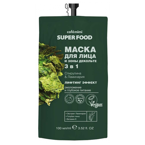 Маска для лица и зоны декольте Super Food 3 в 1 Спирулина & Ламинария 100мл