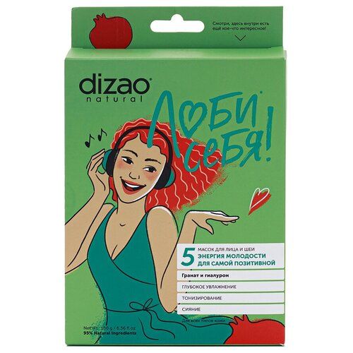 НАЙТИ ВЫГОДНЕЕ - Dizao маска для лица Люби себя Гранат и гиалурон, 196 г, 5 мл, 5 шт. по 5 мл