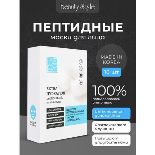 НАЙТИ ВЫГОДНЕЕ - Тканевая маска для лица увлажняющая с гиалуроновой кислотой и экстрактом шелка, 10шт, Beauty Style