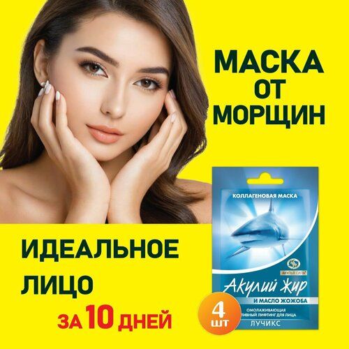 НАЙТИ ВЫГОДНЕЕ - Акулья сила. Маска коллагеновая, омолаживающая, увлажняющая с лифтинг эффектом, для лица. Акулий жир масло жожоба. Набор 4 шт. по 10 мл / лучикс