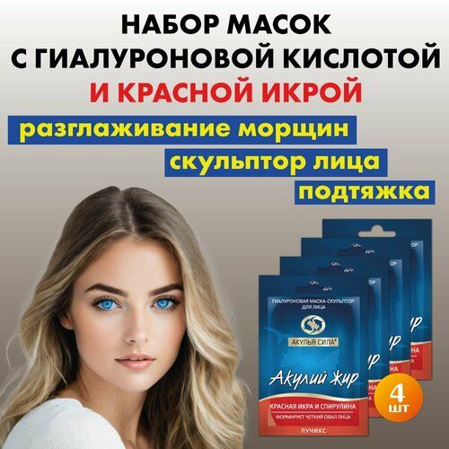 НАЙТИ ВЫГОДНЕЕ - Акулья сила. Маска от морщин для лица, лифтинг и подтяжка. Акулий жир, красная икра и спирулина. Набор 4 шт. по 10 мл / лучикс