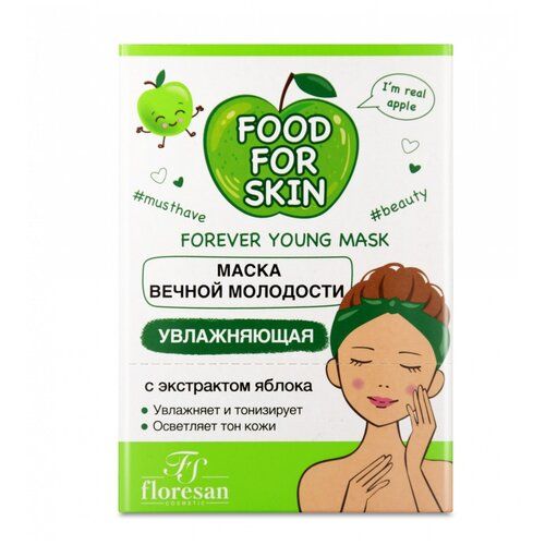 НАЙТИ ВЫГОДНЕЕ - Floresan FOOD FOR SKIN APPLE Маска для лица увлажняющая, 150 г, 15 мл, 10 шт. по 15 мл