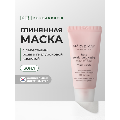 НАЙТИ ВЫГОДНЕЕ - Маска для лица глиняная | Mary&May Rose Hyaluronic Hydra Glow Wash Off Pack 30g