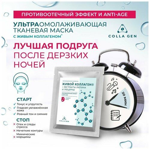 НАЙТИ ВЫГОДНЕЕ - Тканевая маска с живым коллагеном и экстрактами люпина и люцерны. Противоотечный эффект и ANTI-AGE. (Colla Gen)