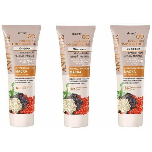 НАЙТИ ВЫГОДНЕЕ - Маска для лица и шеи Витэкс Anti-Age 3D-эффект, Глобальное Омоложение 60+ Антивозрастной, 75мл х 3шт