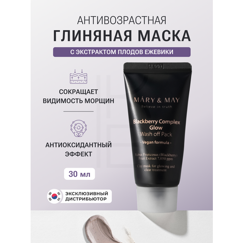 НАЙТИ ВЫГОДНЕЕ - Маска для лица с ежевичным комплексом | Mary&May Blackberry Complex Glow Wash Off Pack 30g