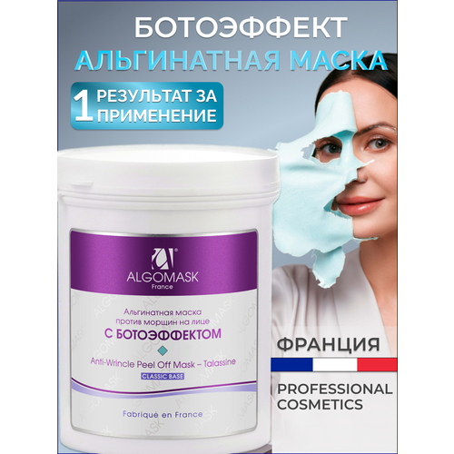 Альгинатная маска профессиональная для лица ботоэффект Algomask с моментальным омолаживающим действием уже после 1 го применения. Маска действует аналогично инъекции ботокса, мягко расслабляет мышцы, разглаживая и уменьшая глубину морщин под глазами, около рта, на лбу, в уголках глаз гусиные лапки, предупреждает раннее старение кожи. Водоросль Lola Implexa освобождает клетки от токсинов и шлаков, обогащает кислородом, освежает и выравнивает цвет лица, улучшает синтез коллагена.