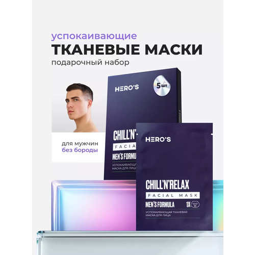 НАЙТИ ВЫГОДНЕЕ - HERO'S Набор масок для лица тканевых мужских успокаивающих