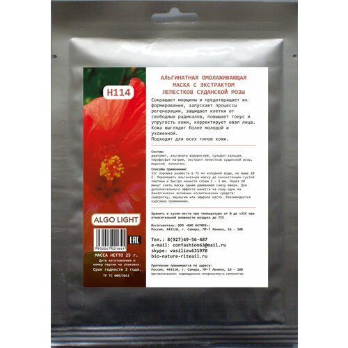 Н114 Альгинатная омолаживающая маска "Лепестки суданской розы" от Bio Nature - это эффективное и удобное средство для ухода за кожей, которое поможет сохранить молодость и красоту вашей кожи.