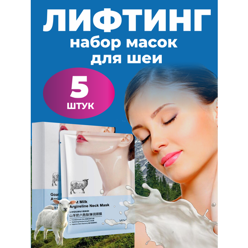 НАЙТИ ВЫГОДНЕЕ - Тканевая маска VEZE Goat Milk Argireline, для шеи, декольте, с эффектом лифтинга, 5 шт