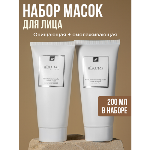 Набор масок для сияния лица Biothal - это российская уходовая косметика неизменно высокого качества, которая подарит Вам профессиональный уход за кожей в домашних условиях Питательная лифтинговая маска Роза с коллагеном против мелких морщин заметно подтягивает овал лица, питает кожу и повышает ее эластичность и упругость, омолаживает и разглаживают тусклую уставшую кожу, минимизируя видимые признаки старения. Содержит гиалуроновую кислоту, которая удерживает в коже влагу. Антивозрастное средство от морщин подходит для лифтинга всех типов кожи. Глиняная успокаивающая маска с Розмарином и Лавандой на основе масел лаванды и розмарина подходит для проблемной кожи, глубоко очищающая поры от загрязнений, уменьшает раздражение и воспаление от акне, придает коже матовость и ровный тон. Эффективно очищает поры от черных точек и излишков кожного сала, а так же сокращает диаметр пор. Интенсивные восстанавливающие продукты создают на коже защитную пленку, которая предохраняет от потери влаги и негативного воздействия внешних факторов. Омолаживающие подтягивающие косметические маски для увлажнения кожи лица и шеи Biothal станут прекрасным подарком для женщин и мужчин.