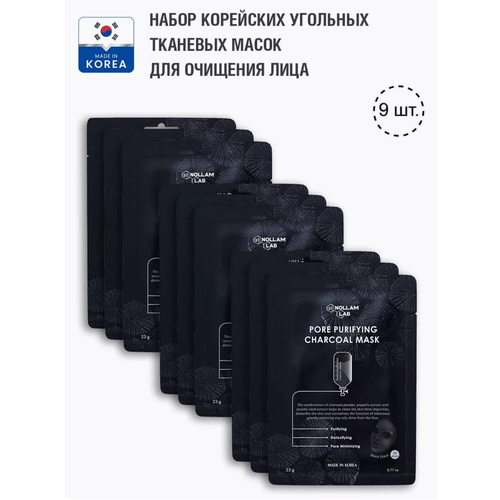НАЙТИ ВЫГОДНЕЕ - Nollam Lab Набор корейских угольных тканевых масок для очищения лица, 9 шт.