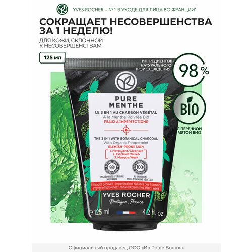 НАЙТИ ВЫГОДНЕЕ - Yves Rocher очищающее средство & маска 3 В 1 С растительным углем – Для кожи, склонной к несовершенствам, 125мл