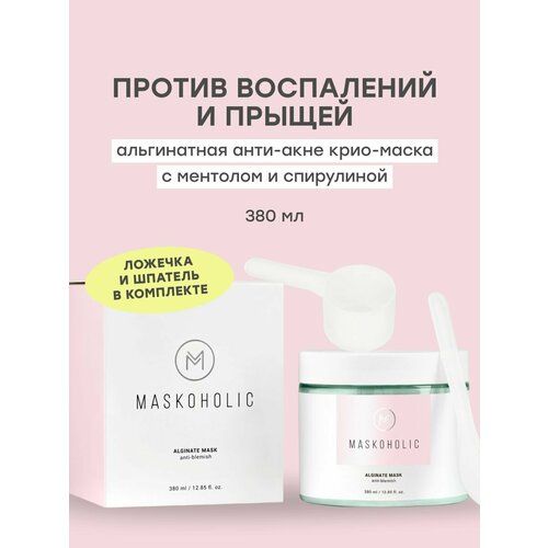 НАЙТИ ВЫГОДНЕЕ - MASKOHOLIC / Альгинатная маска для лица противовоспалительная с ментолом и спирулиной, 380 мл.