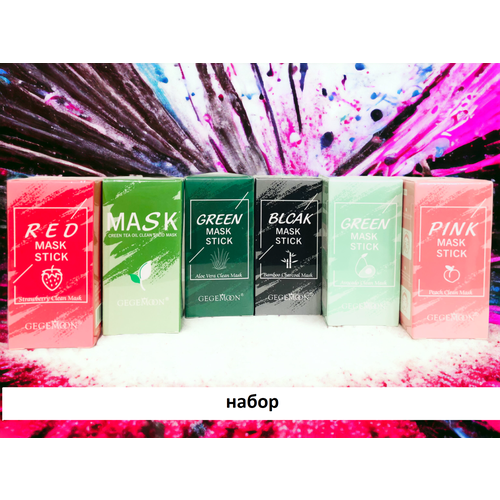 НАЙТИ ВЫГОДНЕЕ - Набор Маска-стик для глубокого очищения с экстрактом клубники, алоэ вера, авокадо, персика, уголь и зеленый чай 6 шт.