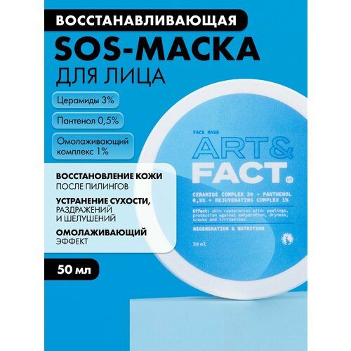 НАЙТИ ВЫГОДНЕЕ - ART&FACT. / Питательная маска для лица после пилинга с церамидами, пантенолом 0,5% и омолаживающим комплексом 1%, 50 мл