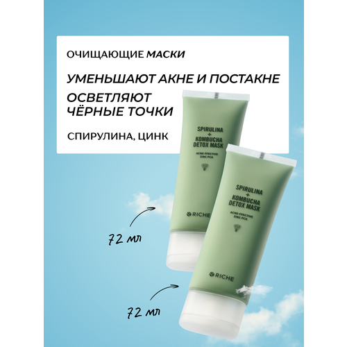 НАЙТИ ВЫГОДНЕЕ - Очищающая маска для лица от прыщей и черных точек 2 шт RICHE Шпинат + Спирулина Рише