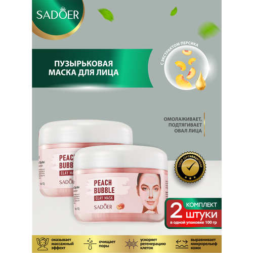 НАЙТИ ВЫГОДНЕЕ - Пузырьковая маска для лица Sadoer с экстрактом персика 100 гр. х 2 шт.