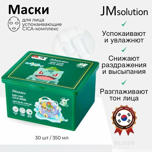 НАЙТИ ВЫГОДНЕЕ - JMSolution Успокаивающая маска для лица с центеллой Easy Care Cica Mask набор 30 шт