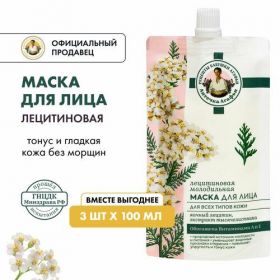 НАЙТИ ВЫГОДНЕЕ - Набор лецитиновая маска Рецепты бабушки Агафьи Аптечка Агафьи Молодильная для всех типов кожи лица, 3 штуки х 100 мл