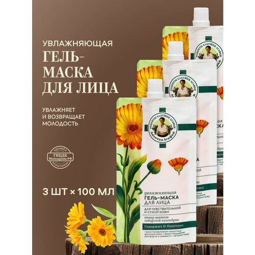 НАЙТИ ВЫГОДНЕЕ - Набор увлажняющая гель-маска Рецепты бабушки Агафьи Аптечка Агафьи для сухой и чувствительной кожи лица, 3 штуки х 100 мл