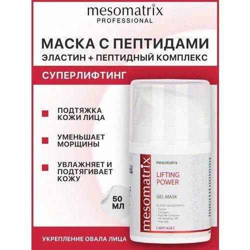 НАЙТИ ВЫГОДНЕЕ - Лифтинг маска для лица антивозрастная с пептидами подтягивающая и увлажняющая, моделирующая для овала лица, с женьшенем, коллагеном и эластином, Anti-Age, LIFTING POWER, 50 мл Mesomatrix Professional