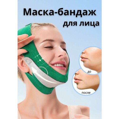 НАЙТИ ВЫГОДНЕЕ - Бандаж для лица и подбородка, маска подтягивающая для коррекции овала лица, для контуринга скул. Компрессионная. Размер Универсальный. зеленый