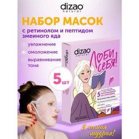 НАЙТИ ВЫГОДНЕЕ - Маска для лица, шеи и подбородка тканевая набор Dizao Пептид змеиного яда и ретинол против морщин 5 шт