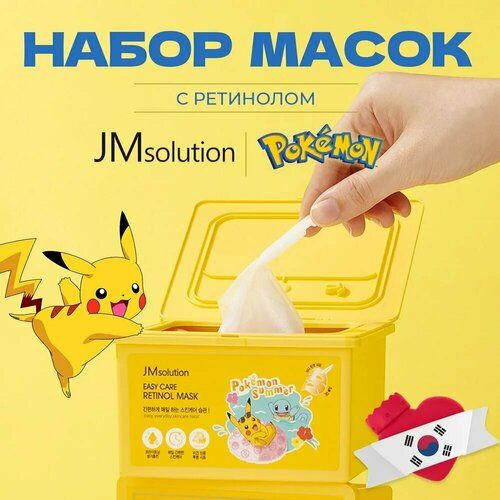 НАЙТИ ВЫГОДНЕЕ - JMsolution Набор обновляющих масок для лица с ретинолом JMsolution Easy Care Retinol Mask Pokemon Summer, Корея 30 шт