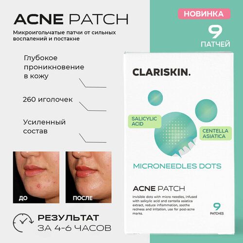 НАЙТИ ВЫГОДНЕЕ - Патчи от прыщей Clariskin 9 шт. С микроиглами 14 мм.