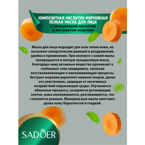 НАЙТИ ВЫГОДНЕЕ - Композитная кислотно-морковная пенная маска для лица Sadoer 12 шт. по 4 гр. х 2 уп.