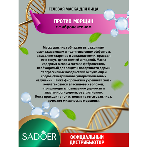 НАЙТИ ВЫГОДНЕЕ - Гелевая маска для лица против морщин Sadoer с фибронектином 20 шт. по 4 гр.
