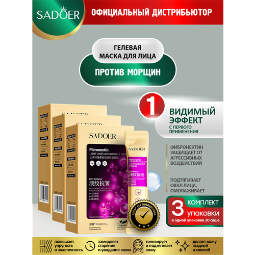 НАЙТИ ВЫГОДНЕЕ - Гелевая маска для лица против морщин Sadoer с фибронектином 20 шт. по 4 гр. х 3 уп.