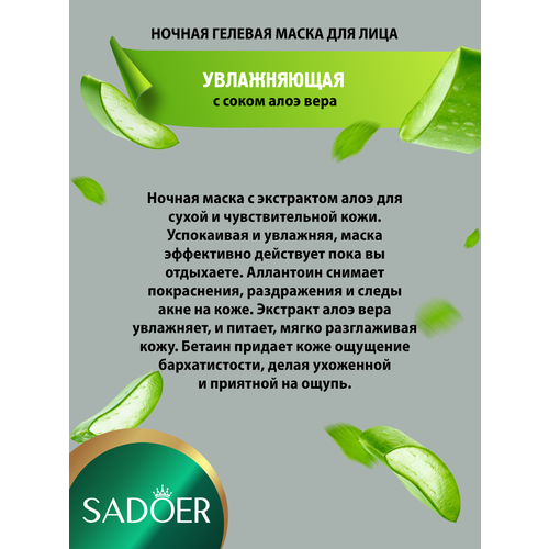 НАЙТИ ВЫГОДНЕЕ - Увлажняющая гелевая ночная маска для лица Sadoer с соком алоэ вера 20 шт. по 4 мл. х 3 уп.