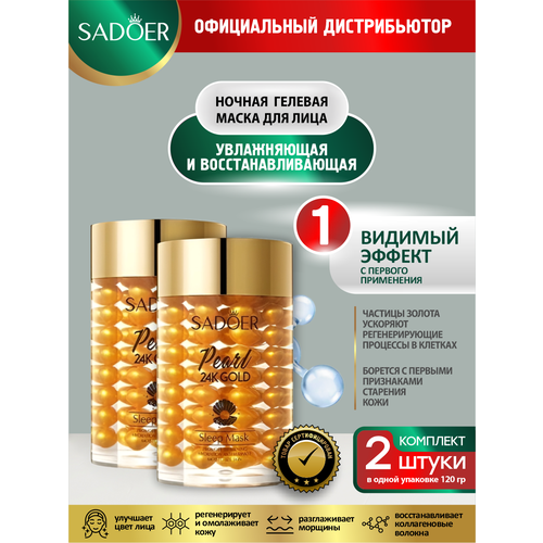НАЙТИ ВЫГОДНЕЕ - Увлажняющая и восстанавливающая ночная маска для лица Sadoer с золотом 24 кар. 120гр х 2 шт