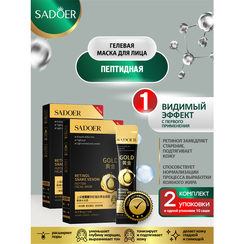 НАЙТИ ВЫГОДНЕЕ - Пептидная гелевая маска для лица Sadoer с ретинолом и змеиным ядом 10 шт. по 6 гр. х 2 уп.