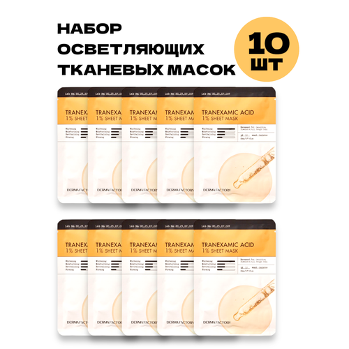 НАЙТИ ВЫГОДНЕЕ - Derma Factory Осветляющая тканевая маска для лица с транексамовой кислотой Tranexamic Acid 1% Sheet Mask 10 шт.
