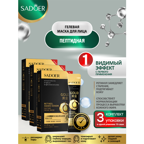 НАЙТИ ВЫГОДНЕЕ - Пептидная гелевая маска для лица Sadoer с ретинолом и змеиным ядом 10 шт. по 6 гр. х 3 уп.