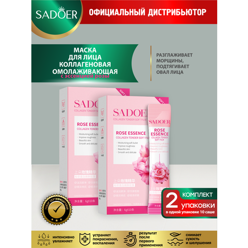 НАЙТИ ВЫГОДНЕЕ - Коллагеновая омолаживающая маска-пленка для лица Sadoer с эссенцией розы 6гр х 10шт х 2уп.