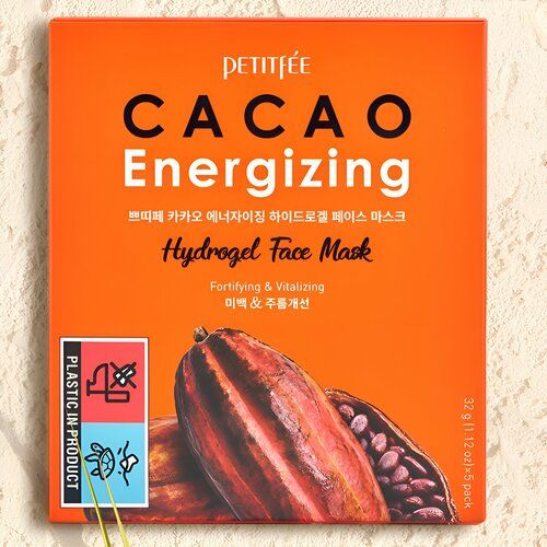 Набор Petitfee Cacao Energizing Hydrogel Face Mask, 5шт*32 g. Тонизирующая гидрогелевая маска для лица с какао оказывает противоотёчное действие, улучшает и освежает цвет лица, интенсивно увлажняет и замедляет процессы старения. Маска в считанные минуты устраняет сухость и следы усталости, тонизирует кожу и мягко осветляет. Гидрогелевая основа маски, обильно пропитанная активной эссенцией, плотно прилегает к коже и передаёт клеткам эпидермиса максимум полезных веществ.