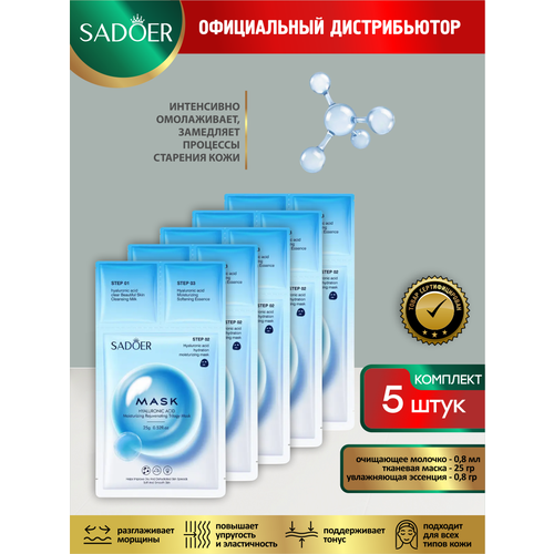НАЙТИ ВЫГОДНЕЕ - Трехкомпонентная увлажняющая маска для лица Sadoer с гиалуроновой кислотой 25 гр. х 5 шт.