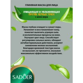 НАЙТИ ВЫГОДНЕЕ - Очищающая и увлажняющая глиняная маска для лица против черных точек Sadoer с алоэ вера 2 шт