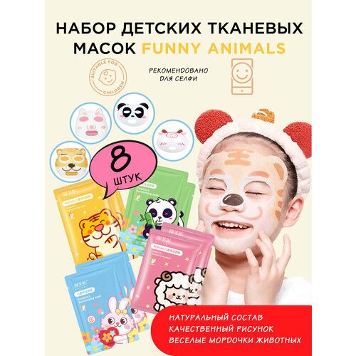 НАЙТИ ВЫГОДНЕЕ - Маски для лица тканевые детские с животными Animals MOFUNI, набор масок для лица детский подарочный 8 штук