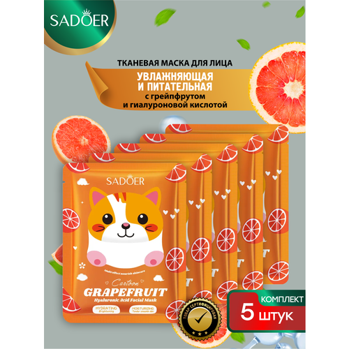 НАЙТИ ВЫГОДНЕЕ - Увлажняющая и питательная маска для лица Sadoer Cartoon с грейпфрутом и гиалуроном 25гр 5шт