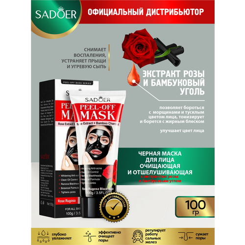 НАЙТИ ВЫГОДНЕЕ - Очищающая и отшелушивающая черная маска Sadoer экстрактом розы и бамбуковым углем 100 гр.