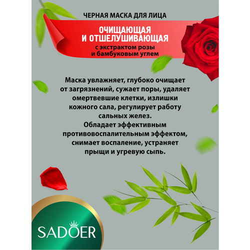 НАЙТИ ВЫГОДНЕЕ - Очищающая и отшелушивающая черная маска Sadoer с розой и бамбуковым углем 100 гр. х 2 шт.