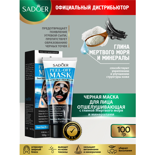 НАЙТИ ВЫГОДНЕЕ - Отшелушивающая черная маска для лица Sadoer с глиной Мертвого моря и минералами 100 гр.